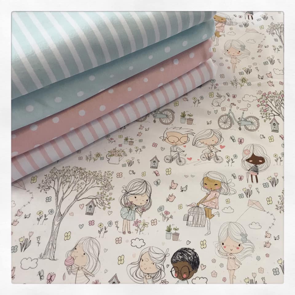 This listing is for 1 meter of the Perfect Spring Day main print.  Don't forget to order the coordinating stripes and dots half and half as well as the panels!
