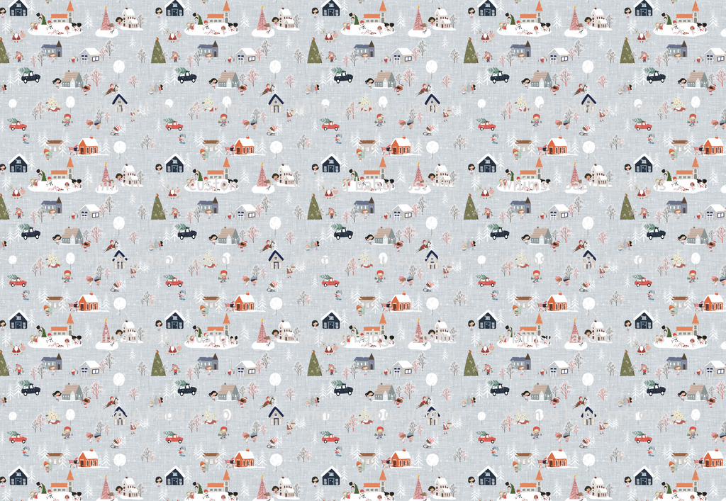 Fabric Natalia Perfect Christmas Winter Village FRENCH TERRY BY THE YARD